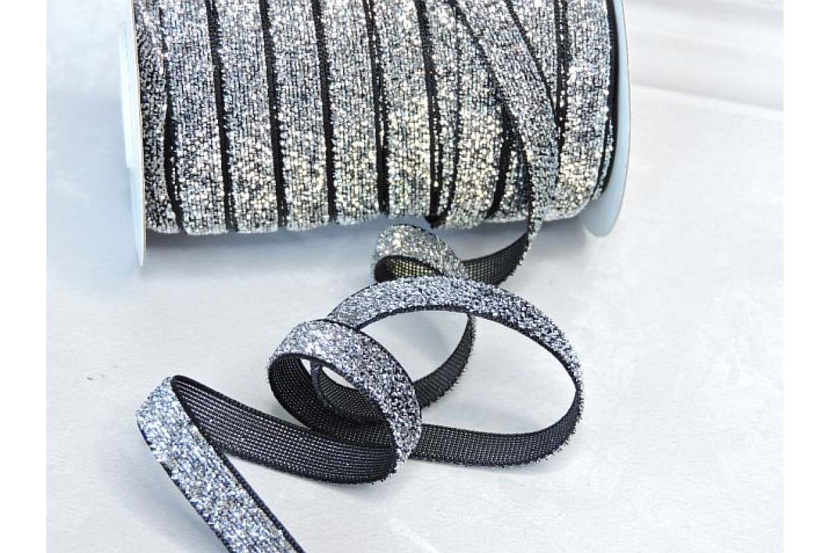 10398, Лента бархатная 1 см, цв. черный/серебро - 1 м., , 0.60BYN, 313-123, Китай, Бархатные ленты