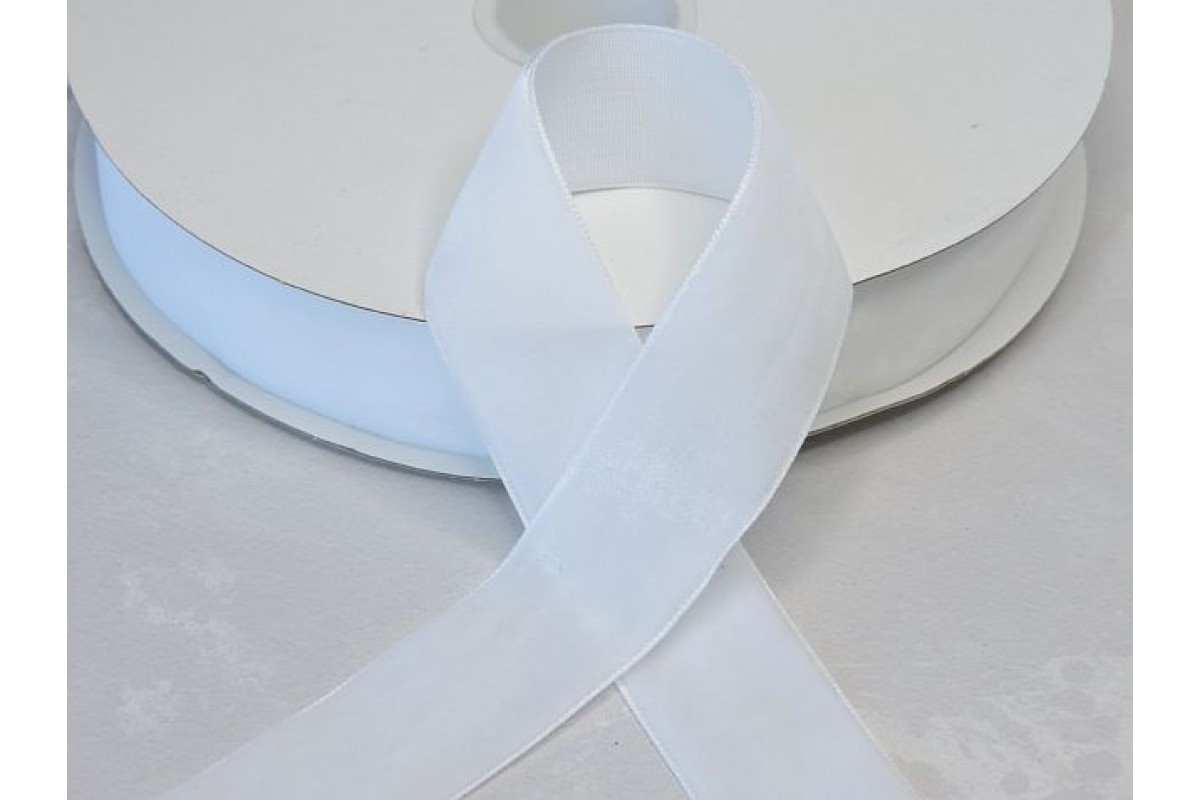 Лента бархатная 25 мм, цв. белый - 1 м.