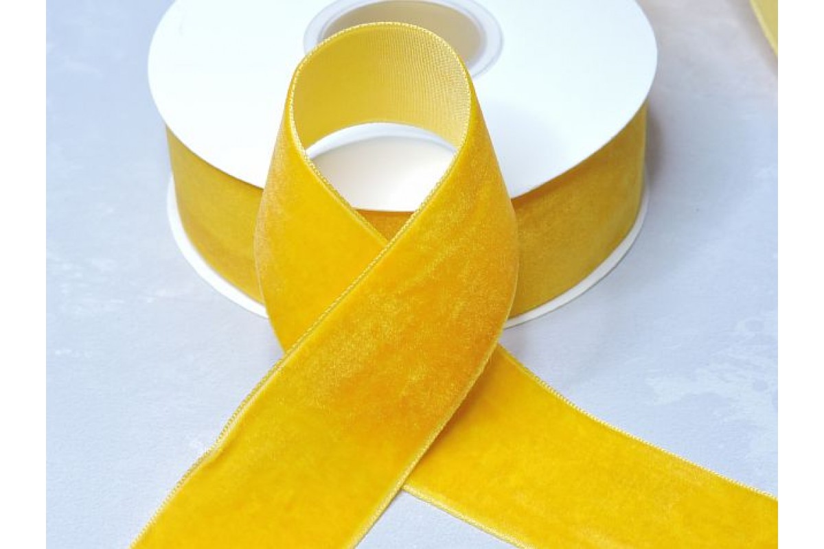Лента бархатная 38 мм, цв. темно-желтый - 1 м., 313-195, Китай, Бархатные ленты