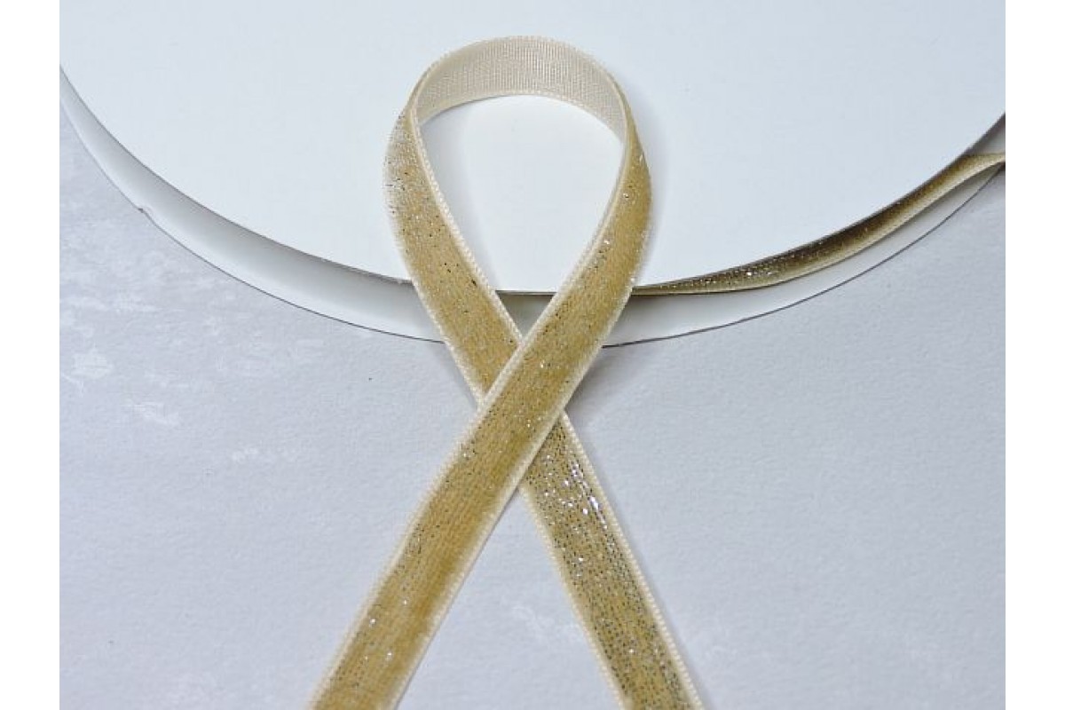 Лента бархатная с люрексом 1 см, цв. бежевый - 1 м., 313-212, Китай, Бархатные ленты