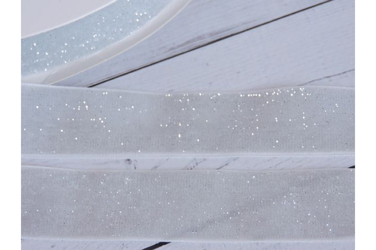 Лента бархатная с люрексом 25 мм, цв. белый - 1 м.
