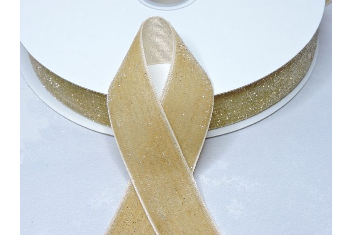 Лента бархатная с люрексом 25 мм, цв. бежевый - 1 м.