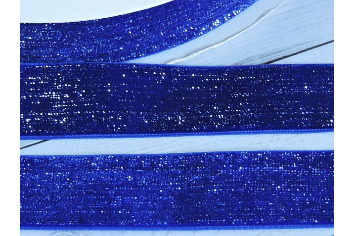 Лента бархатная с люрексом 25 мм, цв. синий - 1 м.