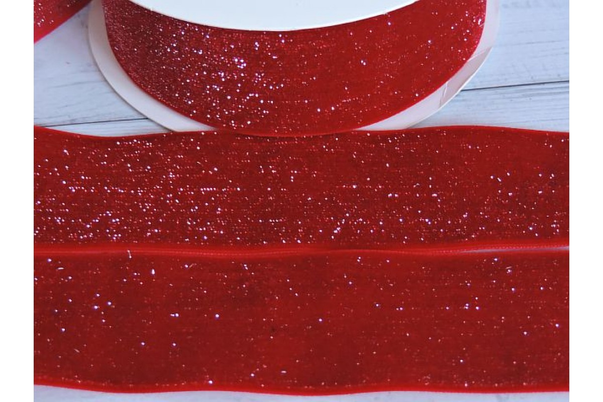 Лента бархатная с люрексом 38 мм, цв. красный - 1 м.