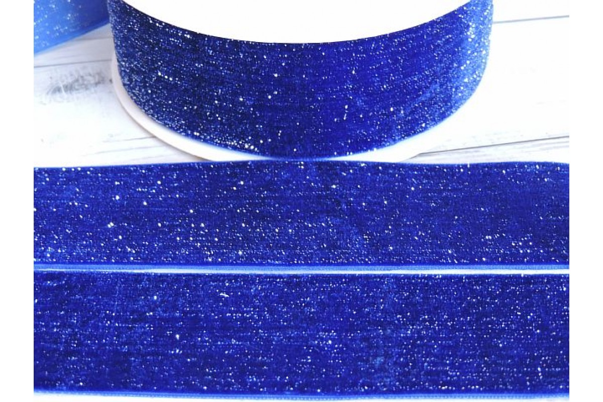 Лента бархатная с люрексом 38 мм, цв. синий - 1 м.