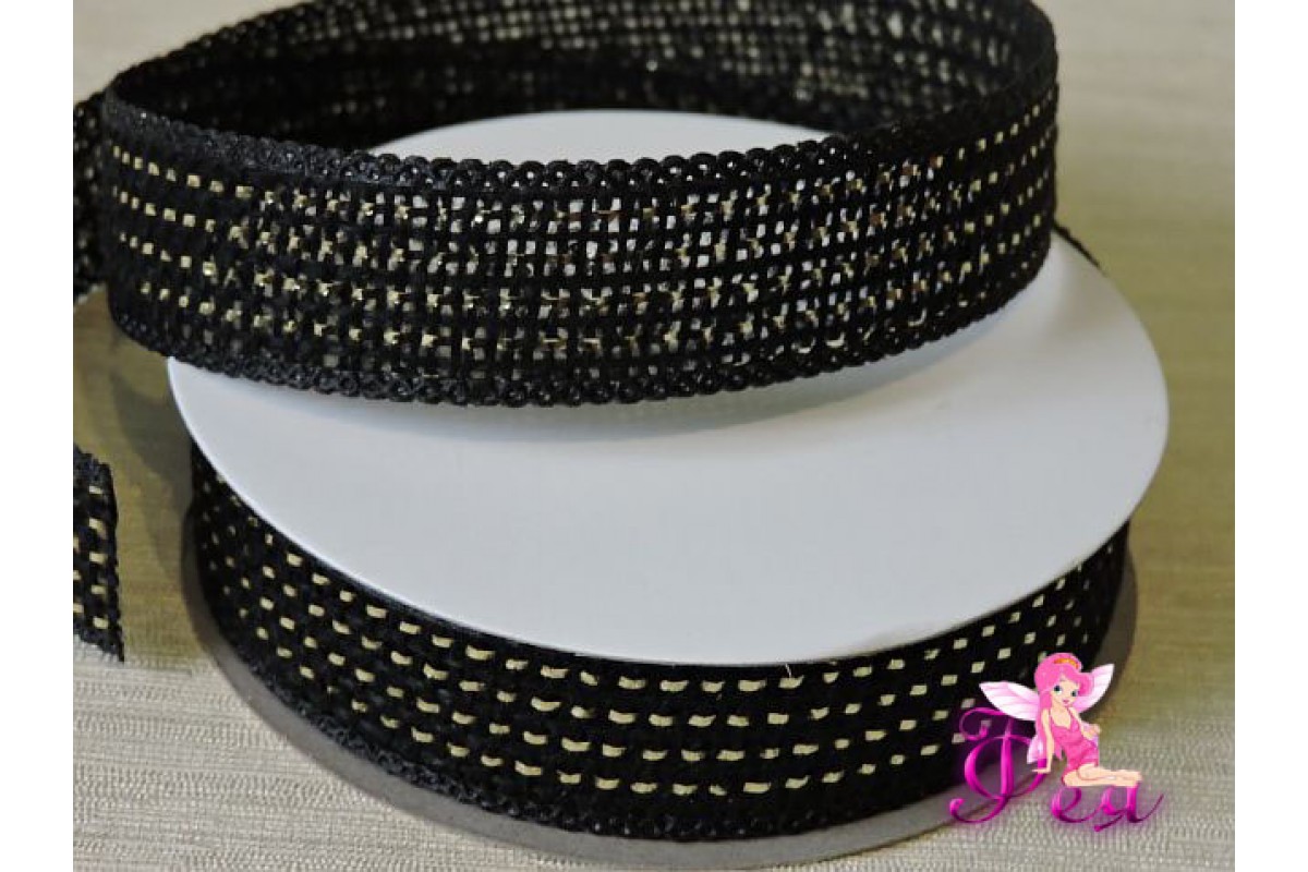 Декоративная лента 25 мм, черного цвета с золотистой вставкой