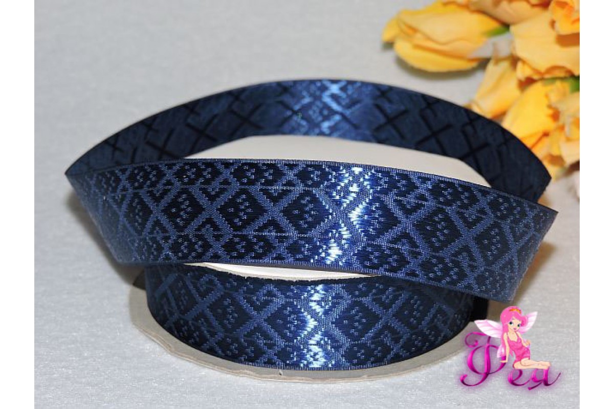 Декоративная лента 25мм синего цвета с вышивкой, Л 30/40, Китай, Декоративная лента