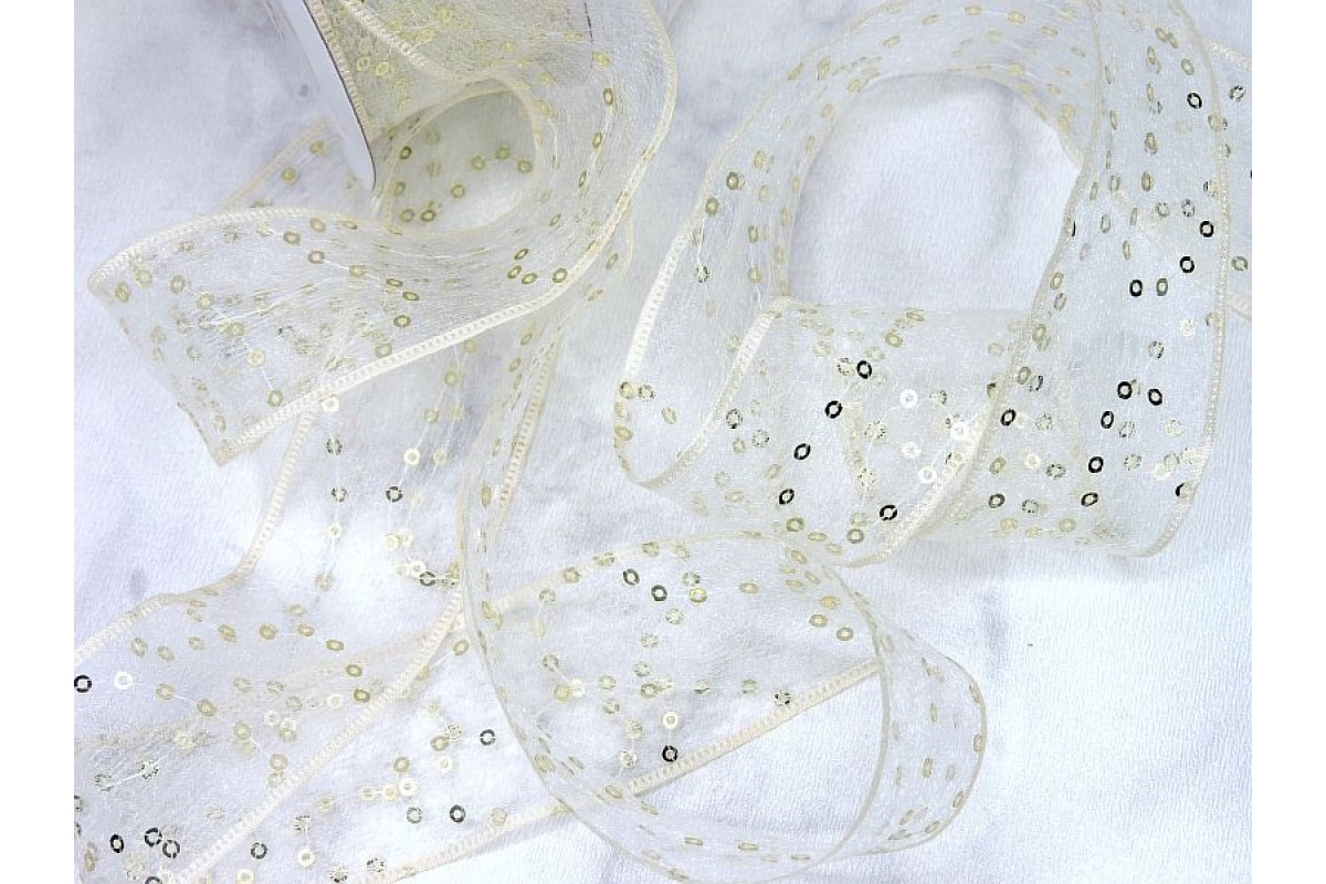 Лента декоративная 40 мм с пайетками, цв. айвори - 1 м.