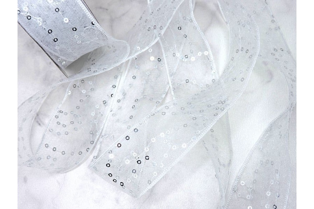 Лента декоративная 40 мм с пайетками, цв. белый - 1 м.