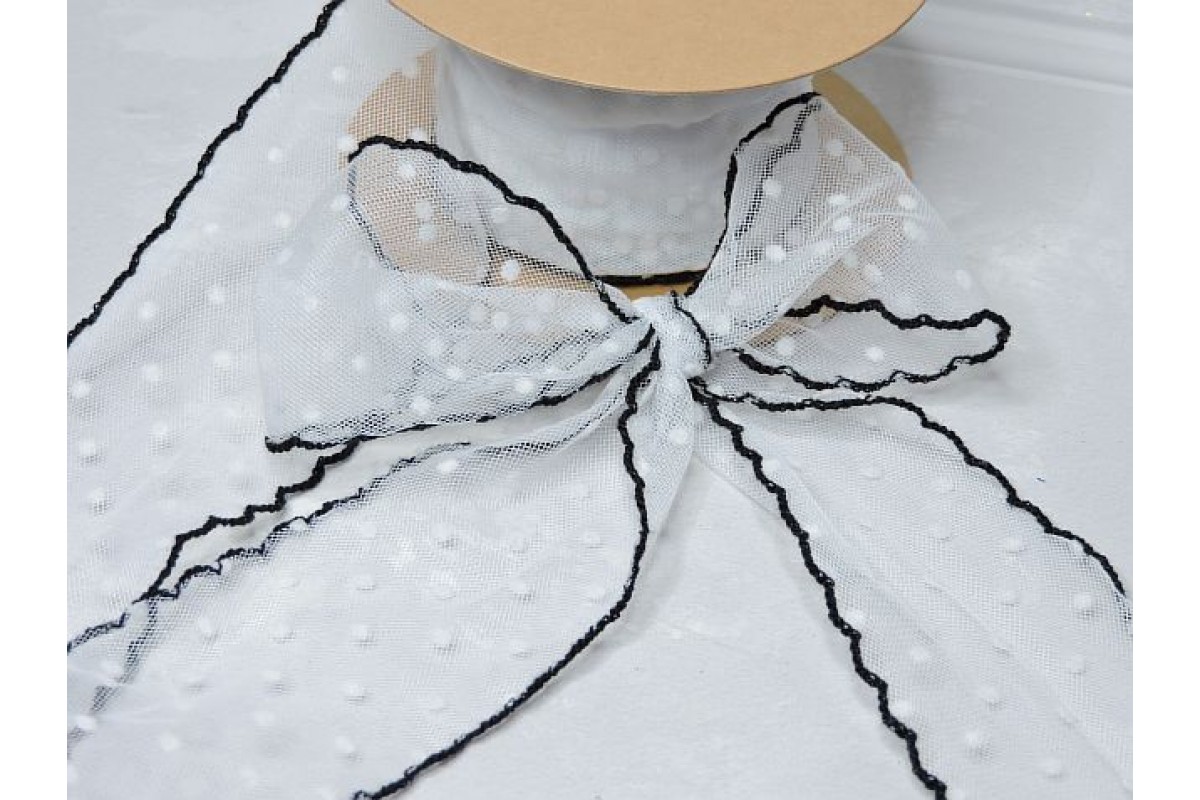 Лента декоративная 5,5 см "Горошек", цв. белый/черный - 1 м.