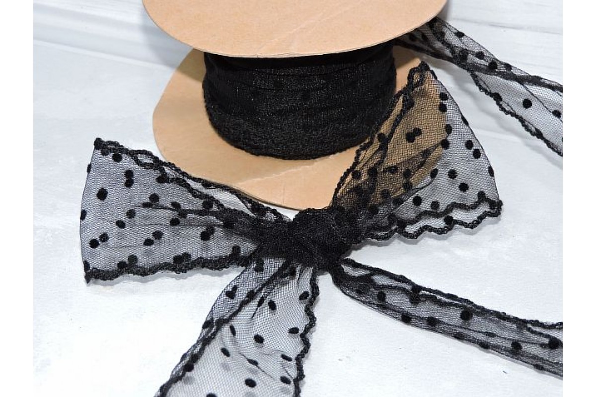 10578, Лента декоративная 5,5 см "Горошек", цв. черный - 1 м., , 3.30BYN, 312-637, Китай, Декоративная лента