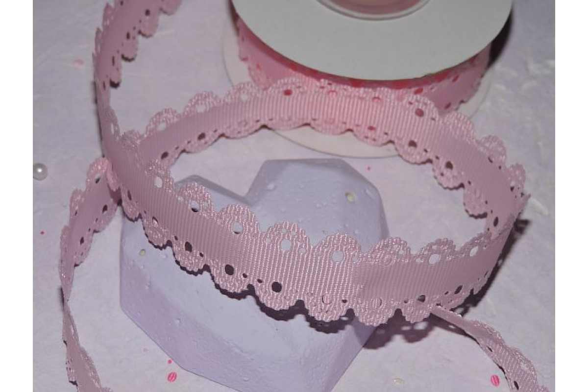 Лента репсовая с ажурными краями 20 мм, розовый 04 - 1м