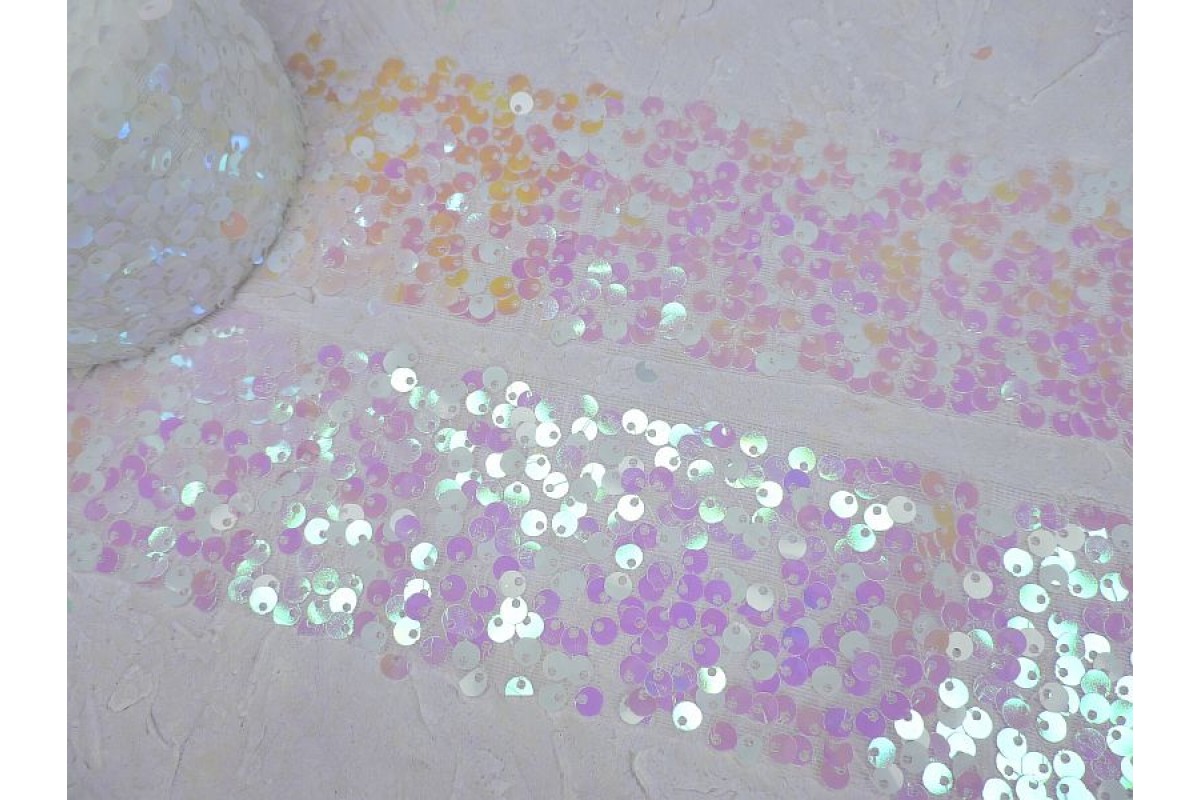 Лента с пайетками 6 см, цв. - белый - 1 м.