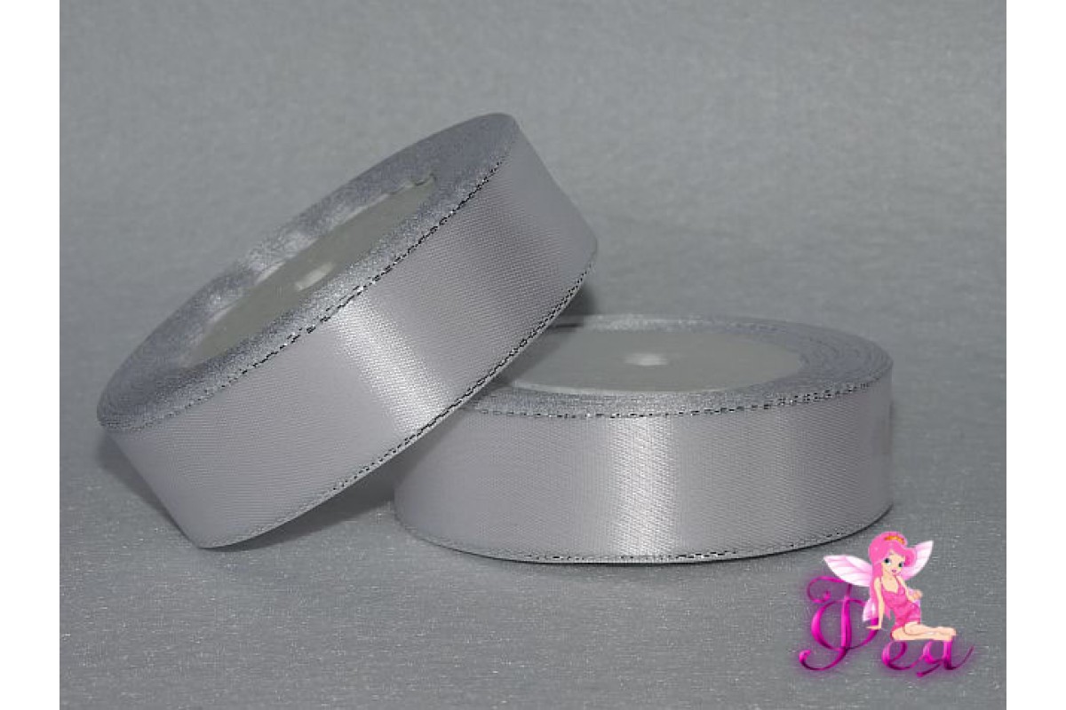 Лента атласная 25 мм, с серебряным люрексом цв. белый - 1 м