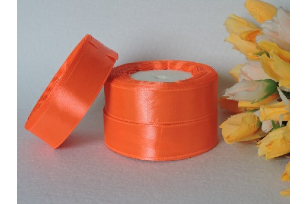 Однотонная атласная лента 25 мм, неоново-оранжевого цвета