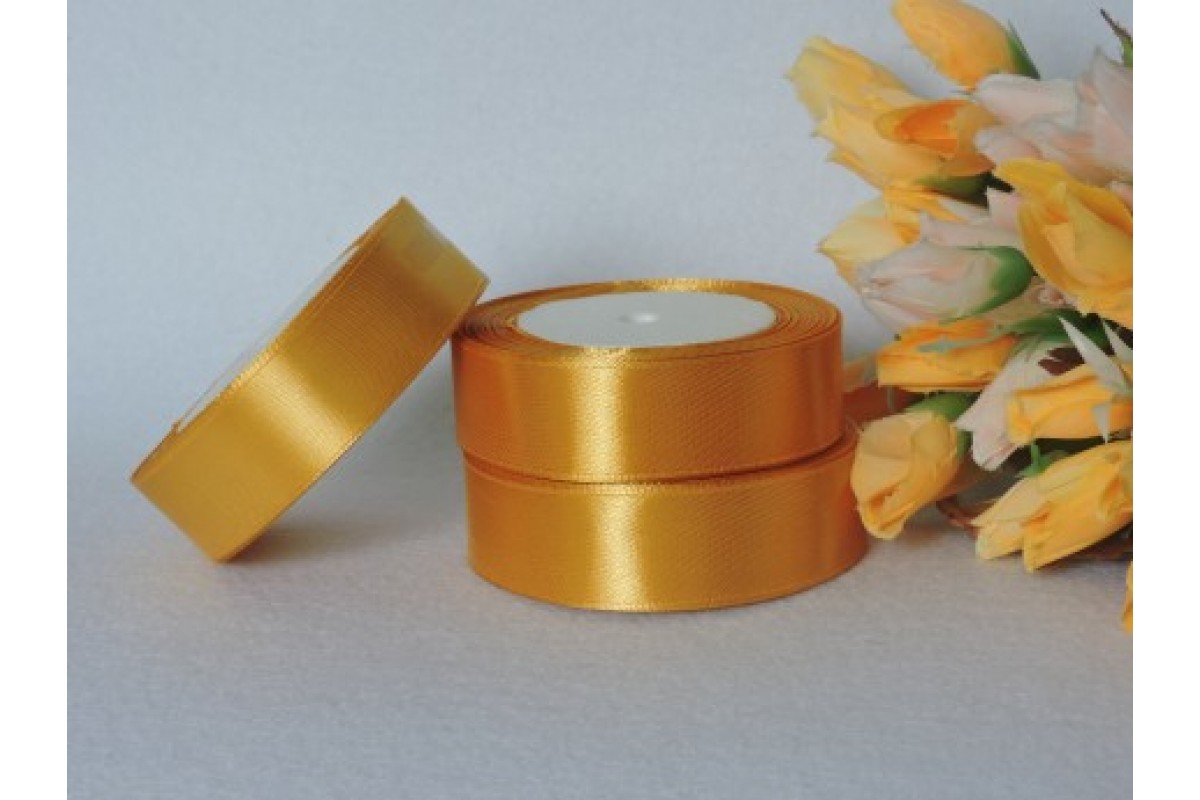 Однотонная атласная лента 25 мм, золотистого цвета