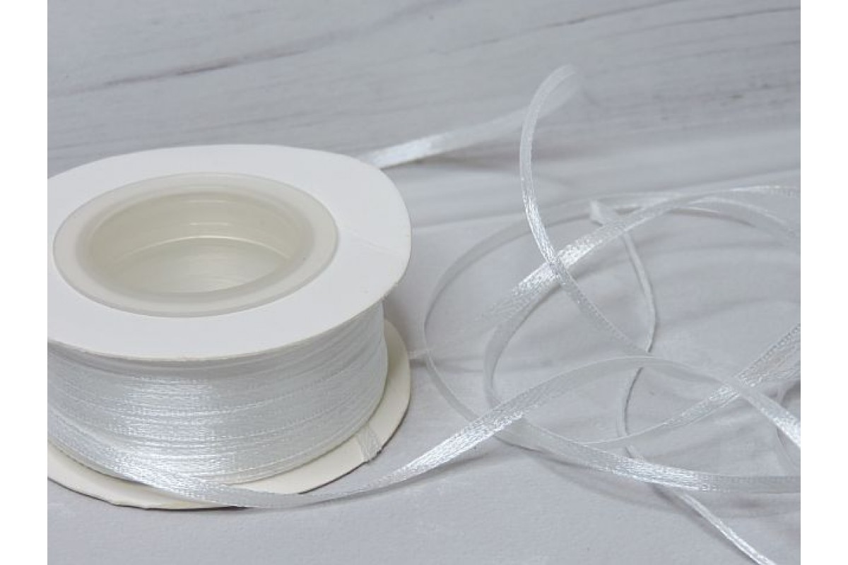 Лента атласная 3 мм, цв. молочный (отрез 5 м)