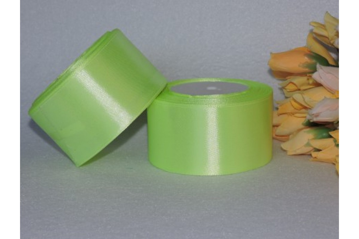 Однотонная атласная лента 50 мм , бледно-салатового цвета