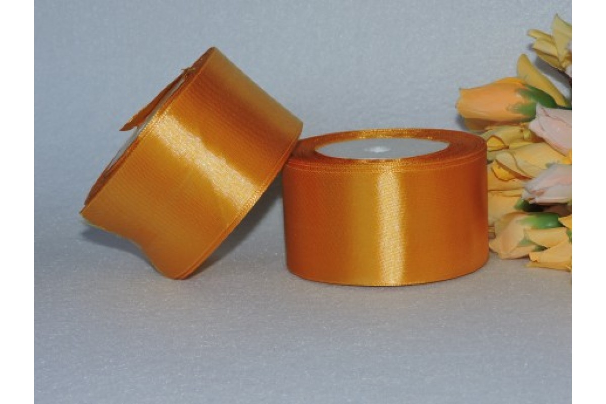 Однотонная атласная лента 50 мм, золотистого цвета