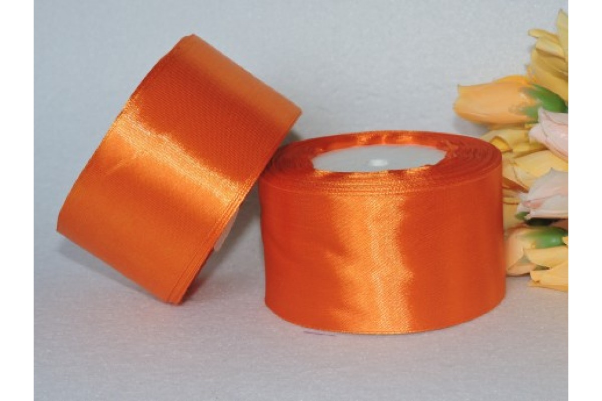 Однотонная атласная лента 50мм, цв. темно-оранжевый