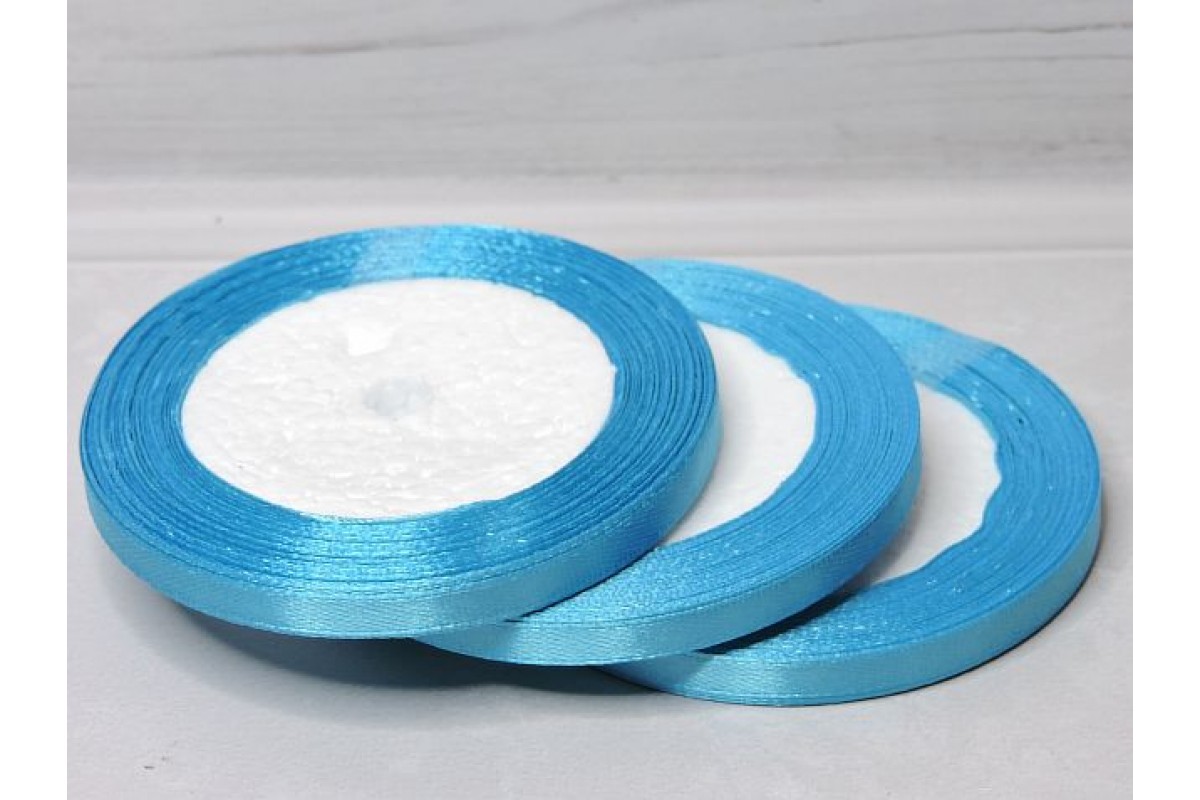 Атласная лента 6 мм*23 м, цв. голубой - 1 бобина