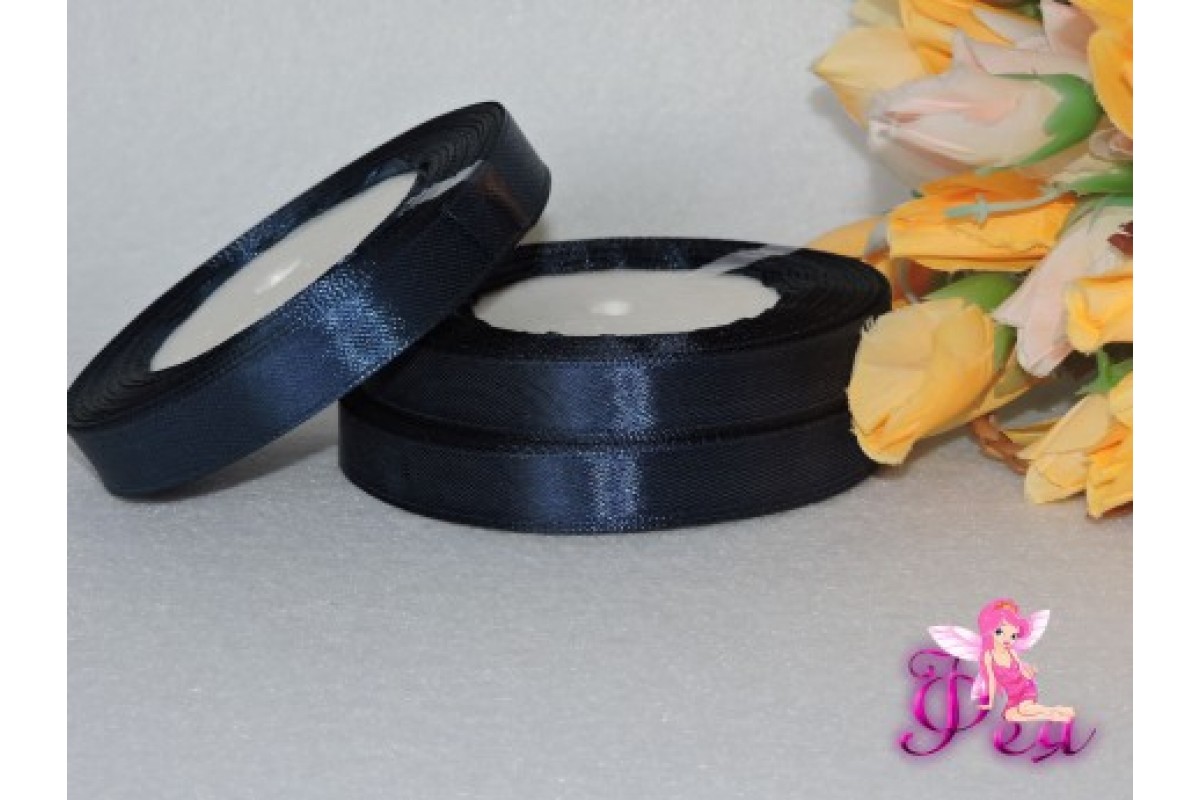 Однотонная атласная лента 12мм, цв. темный джинс, С 160/25, Китай, 10-12 мм