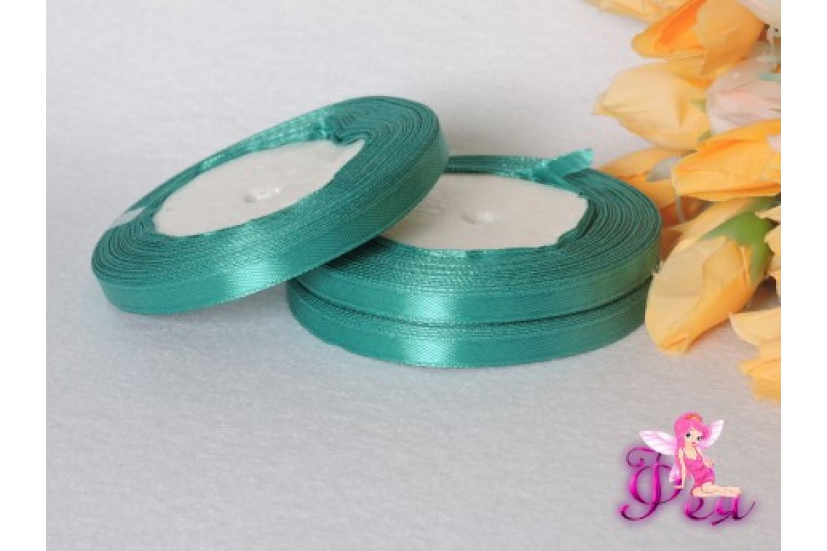 Однотонная атласная лента 6 мм* 23м, лазурно-серого цвета