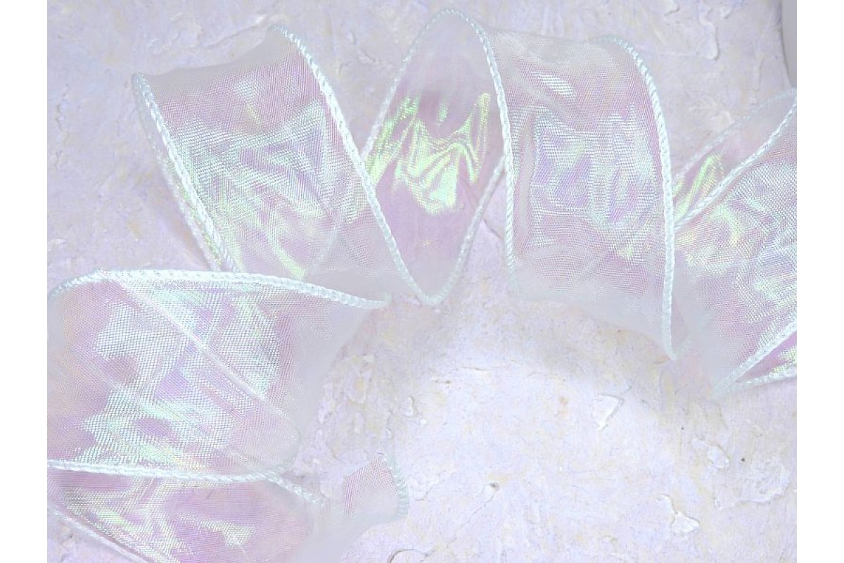 Лента 35 мм капроновая волна, цв. белый хамелеон - 1 м., 5674, Китай, Органза