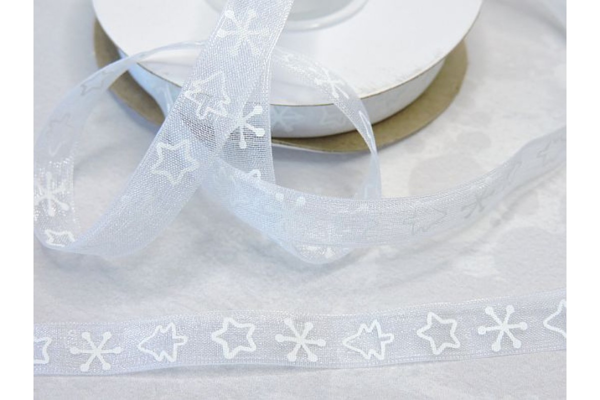 Лента органза 1 см,"Новогодняя", цв. белый - 1 м.