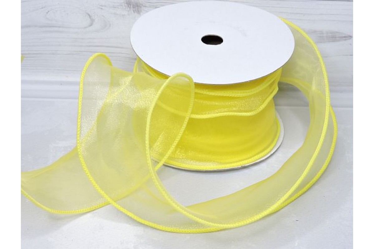 Лента органза 6 см с декоративным швом, цв. желтый - 1 м.