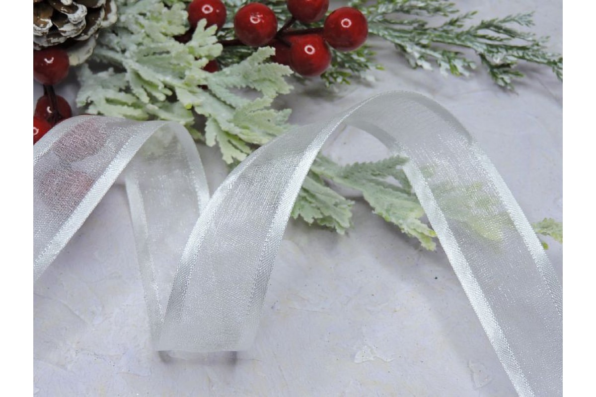 11025, Лента органза с атласом 25 мм, цв. белый - 1 м., , 0.40BYN, 001045, Россия, Органза