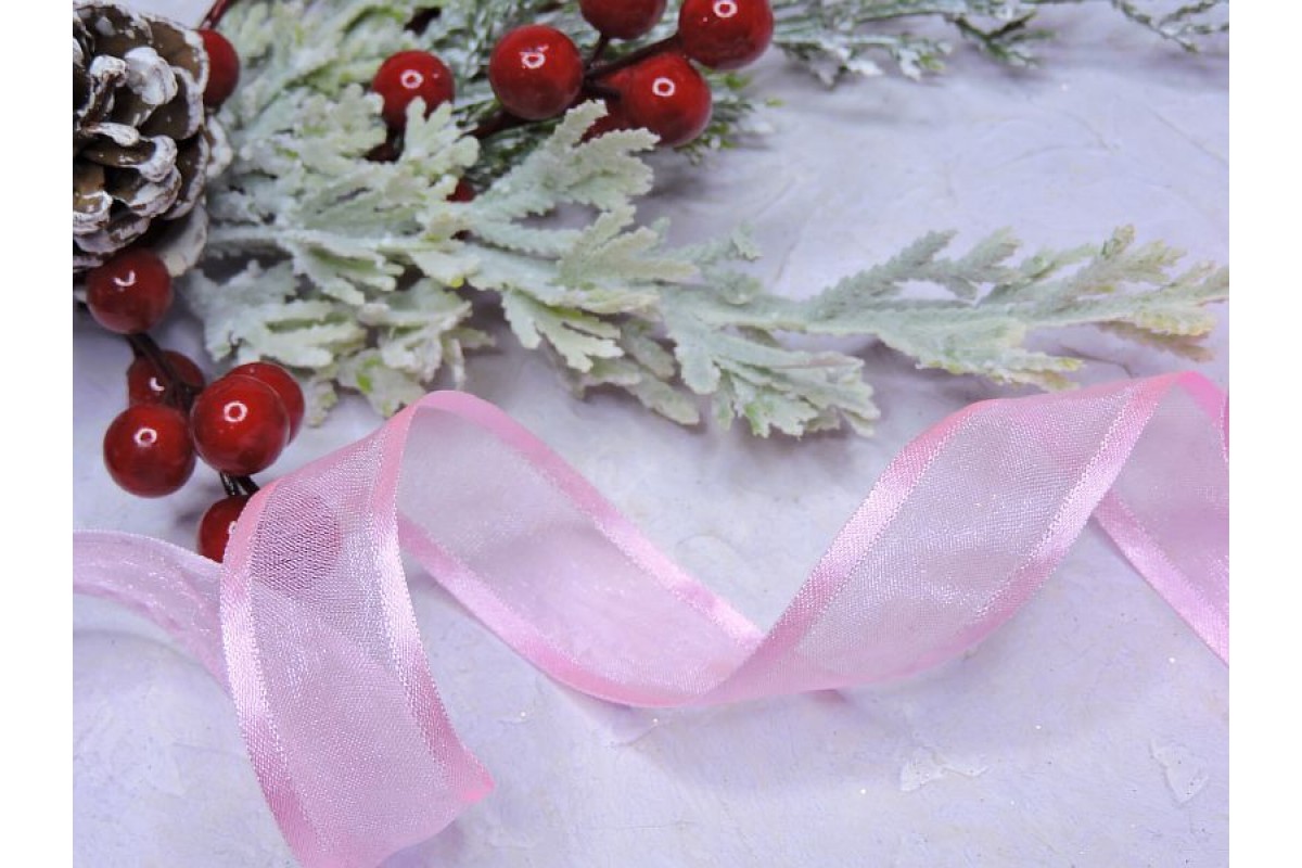 Лента органза с атласом 25 мм, цв. розовый - 1 м., 001005, Россия, Органза