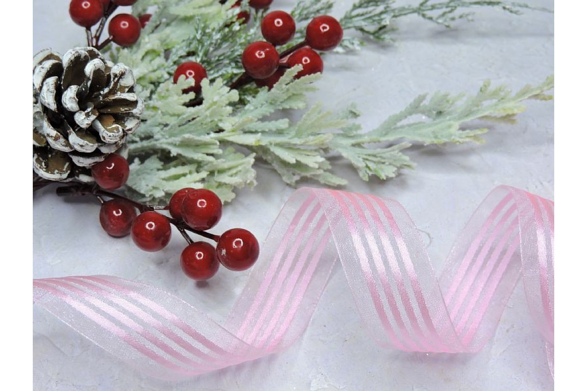 Лента органза с атласом 25 мм по середине полоска, цв. розовый - 1 м.