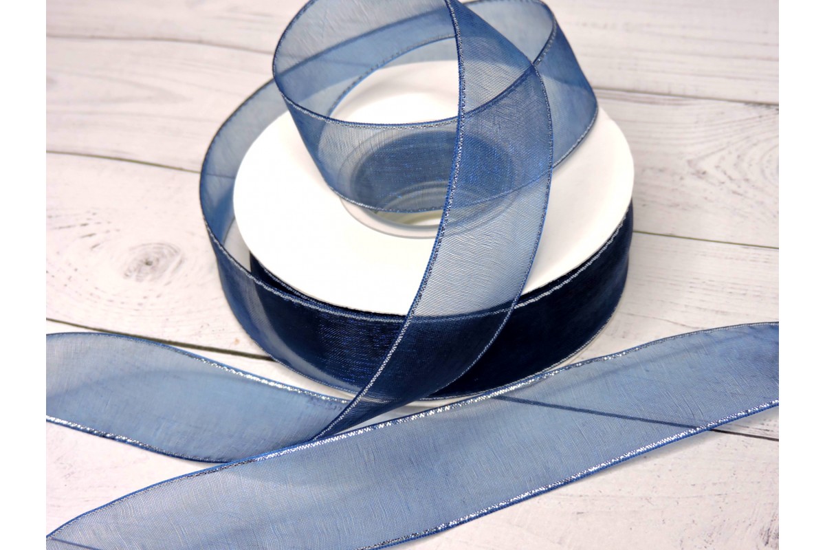 Лента органза с люрексом 25 мм, цв. темно-синий - 1 м.