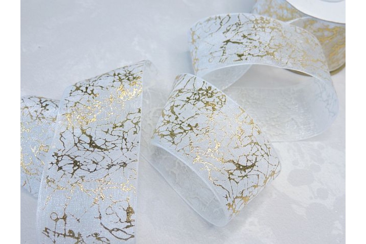 Органза 40 мм "Узор", цв. золото/белый - 1 м.