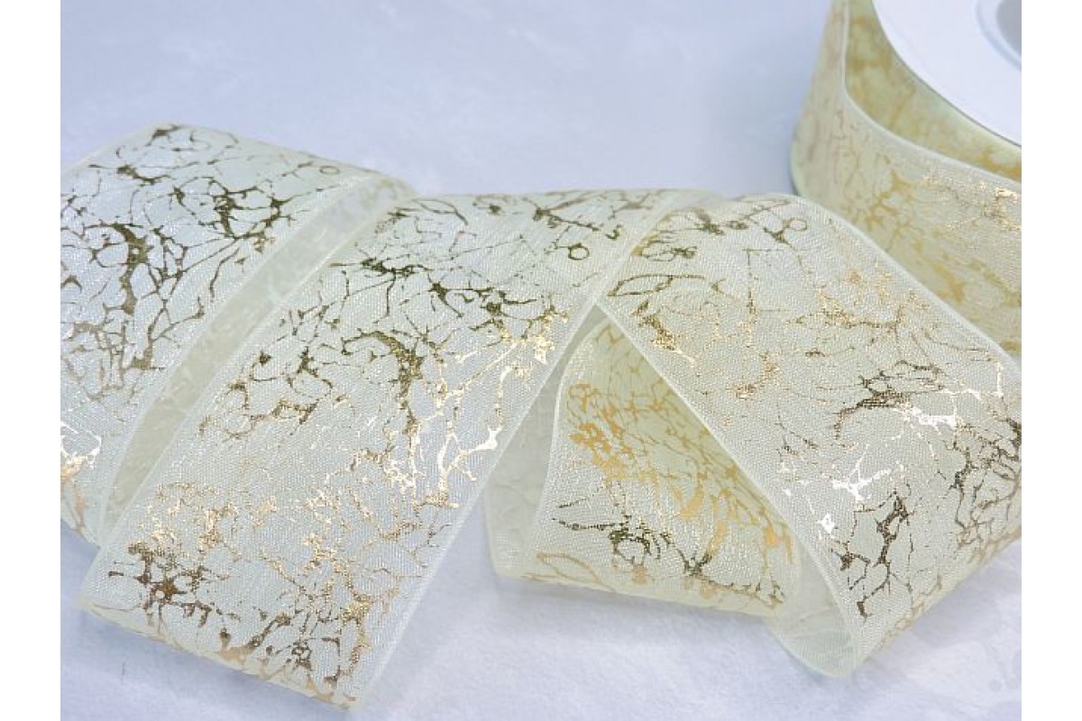 Органза 40 мм "Узор", цв. золото/кремовый - 1 м.