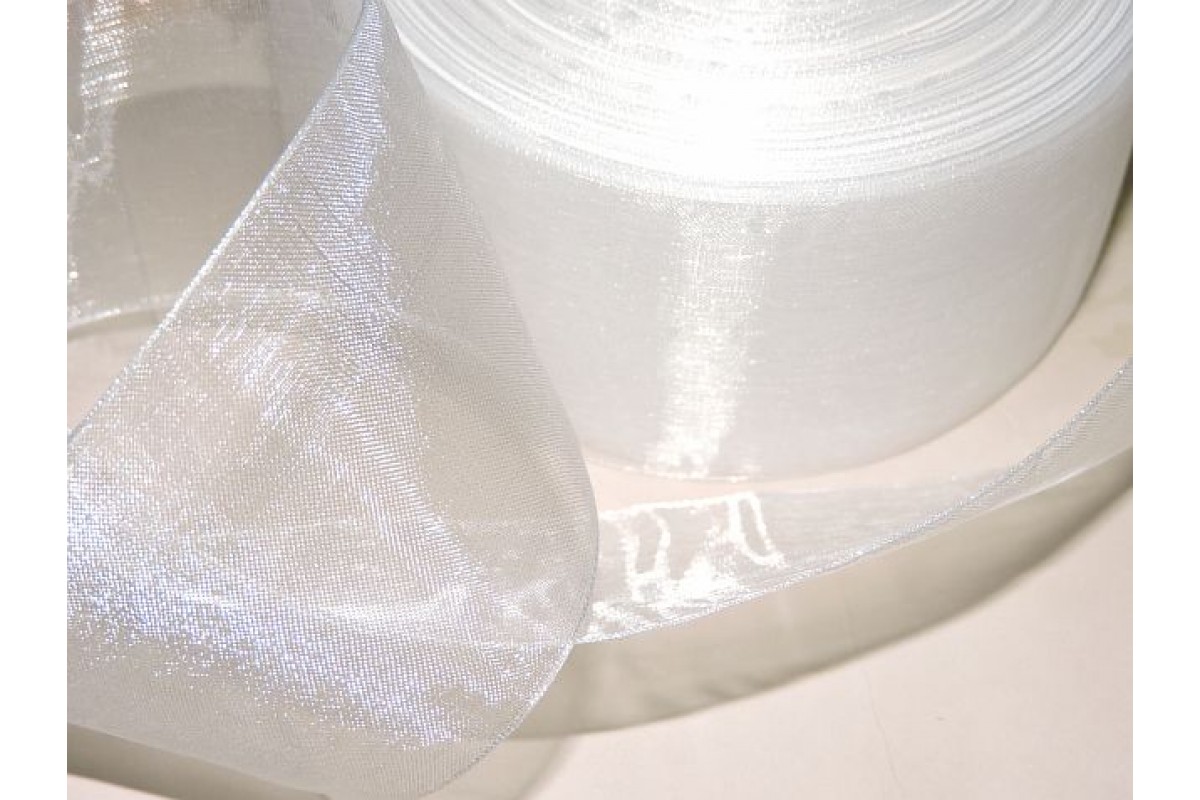 Органза однотонная 50 мм, цв. белый - 1 м, Е 20/230, Китай, Органза