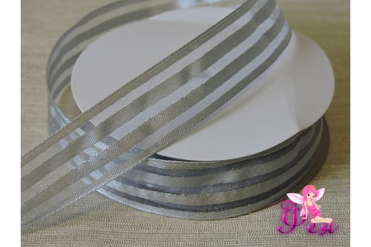 Органза с атласом 25 мм, цв. серебро (1 м), F 100/50, Китай, Органза