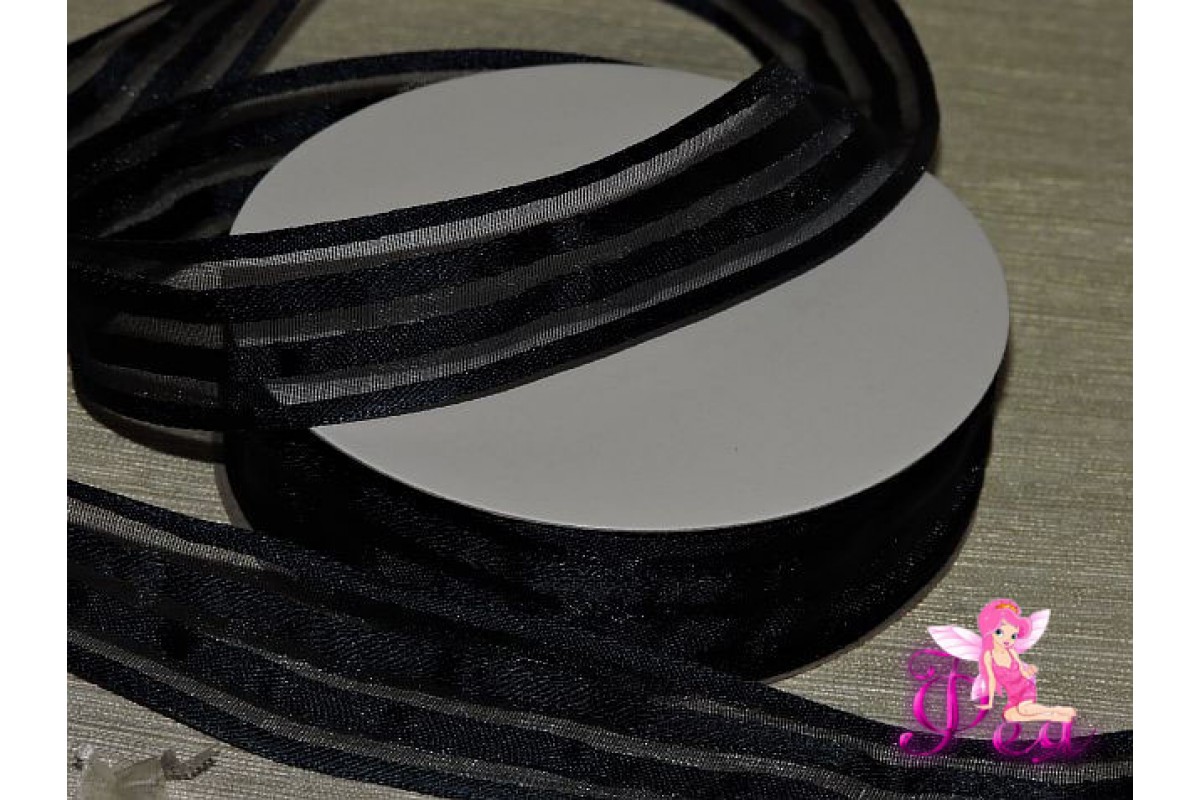 Органза с атласом 25 мм, цв. темно-синий (1 м), F 120/40, Китай, Органза