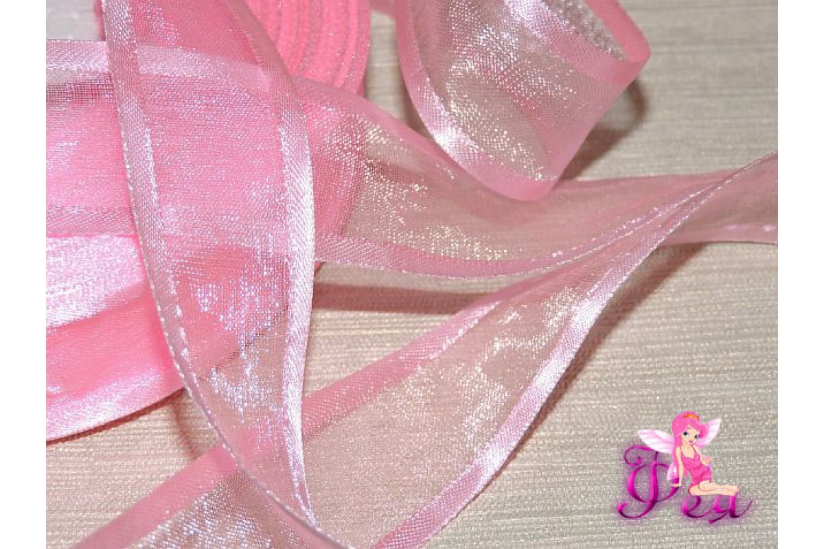 Органза с атласом 25мм, нежно-розового цвета - 1 м
