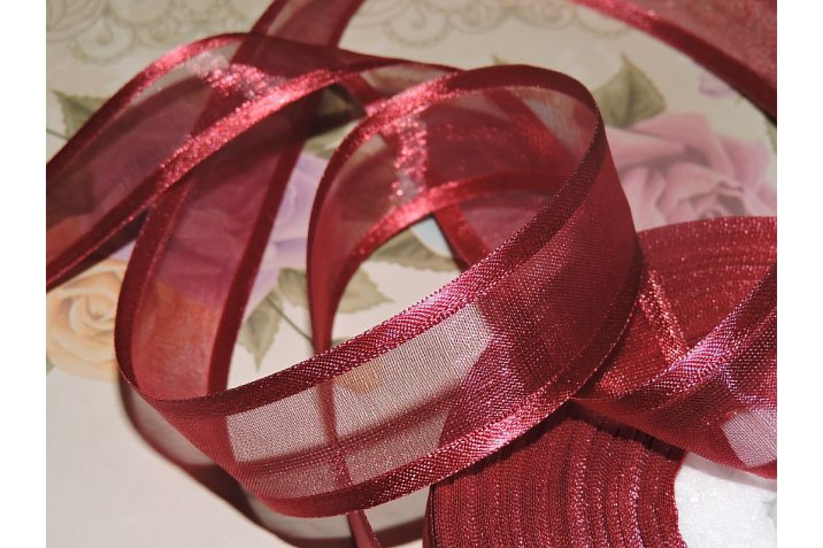 Органза с атласом 25мм, цвет красно-коричневый - 1м