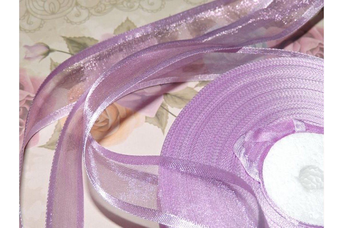 Органза с атласом 25мм, цвет сиреневый - 1м