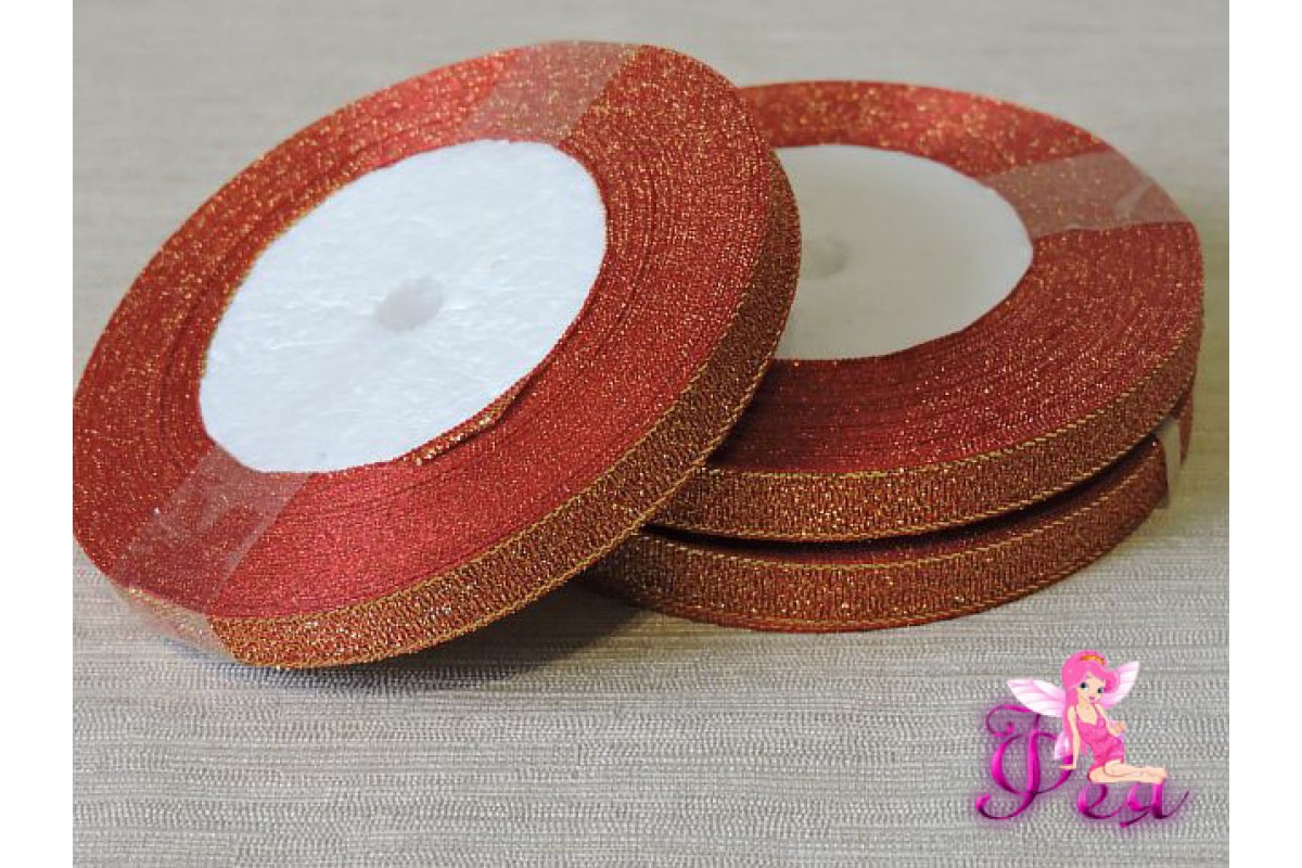 Лента парча 10 мм, цв. оранжевый с золотом, F 30/300, Китай, Парчовая