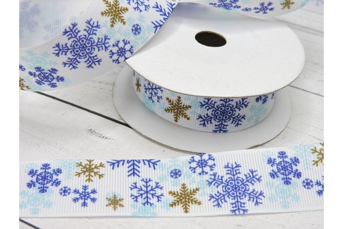 Репсовая лента 25 мм с рисунком "Снежинки"