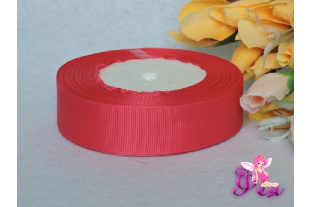 Однотонная репсовая лента 25 мм, цв. неоново-розовый 1 м