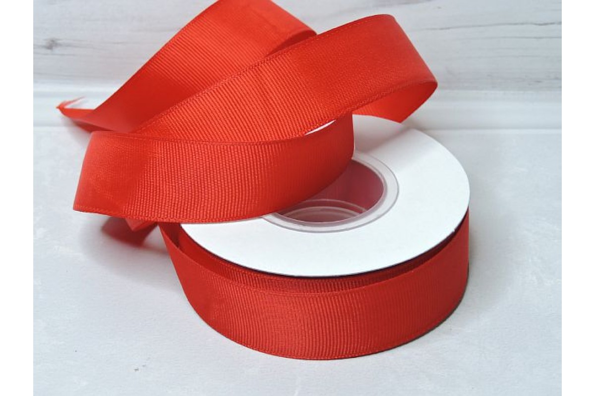 Репсовая лента 25 мм, цв. красный №26 - 1 м.
