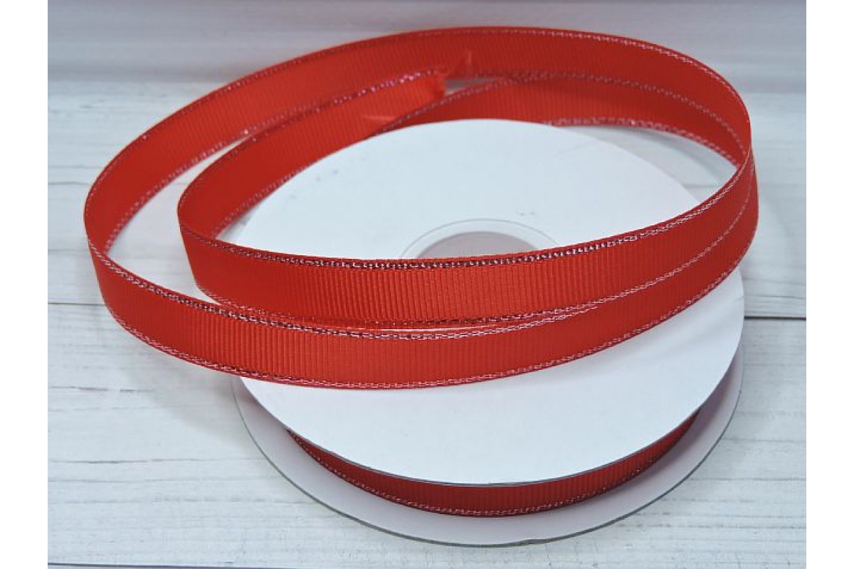 Лента репсовая 12 мм с люрексом серебро, цв. красный - 1 м., 126-1, Китай, Репсовые ленты с люрексом