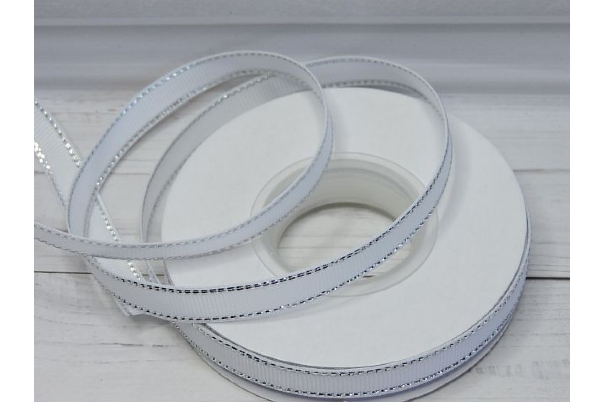 Лента репсовая 10 мм с люрексом серебро, цв. белый - 1 м.