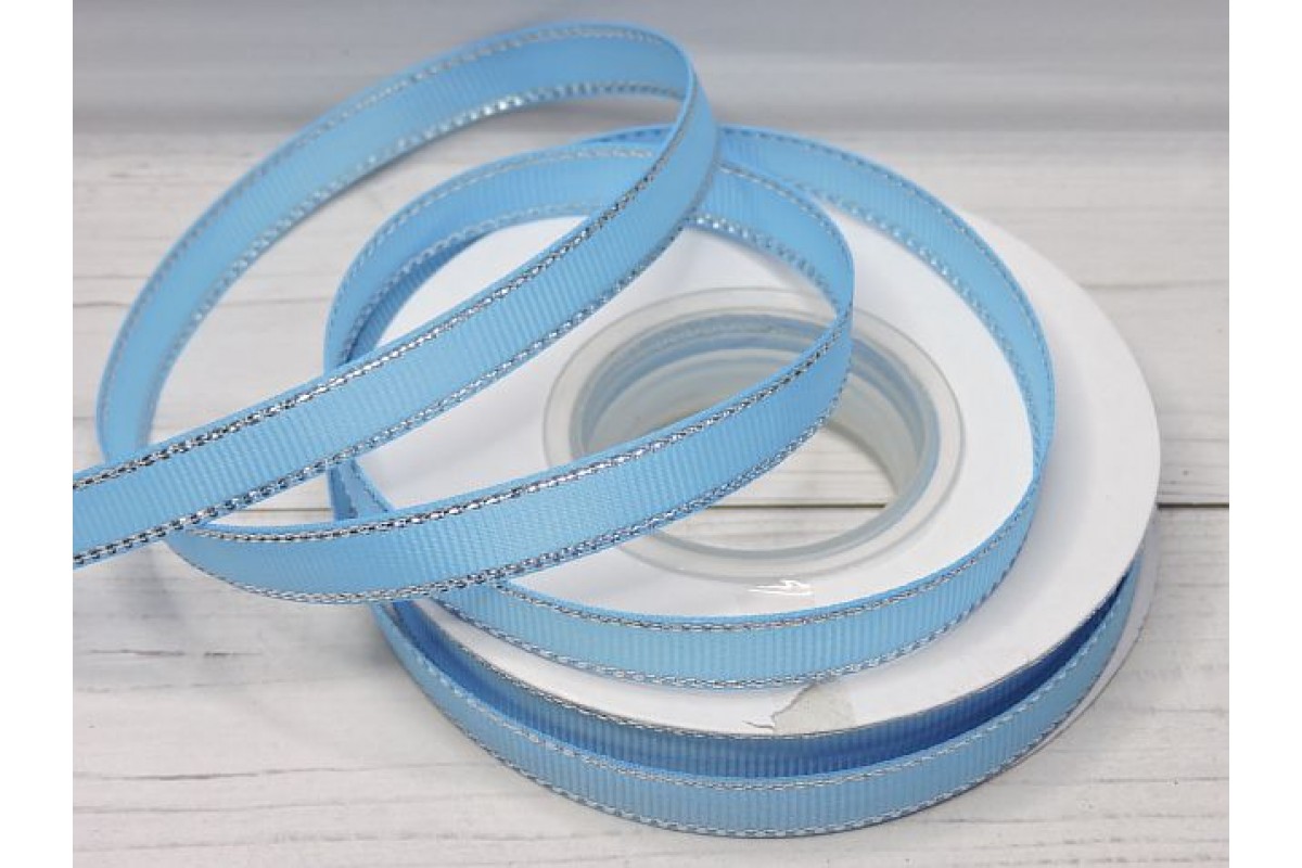 Лента репсовая 10 мм с люрексом серебро, цв. голубой - 1 м., 126-305, Китай, Репсовые ленты с люрексом