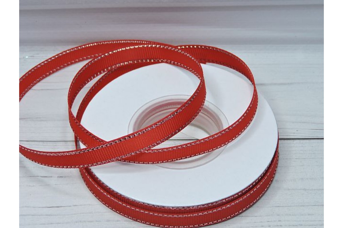 Лента репсовая 10 мм с люрексом серебро, цв. красный - 1 м., 126-308, Китай, Репсовые ленты с люрексом